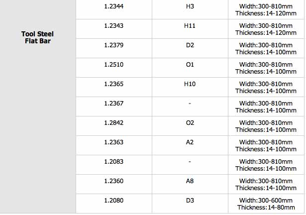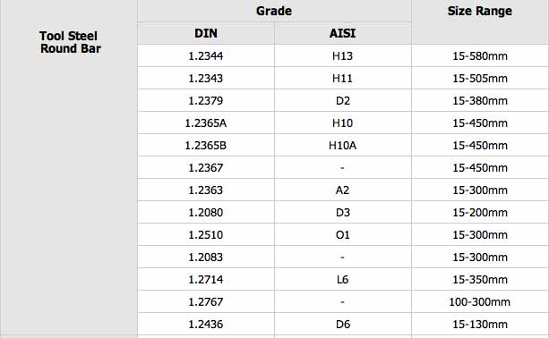 Tool Steel Bar Grade Chart: